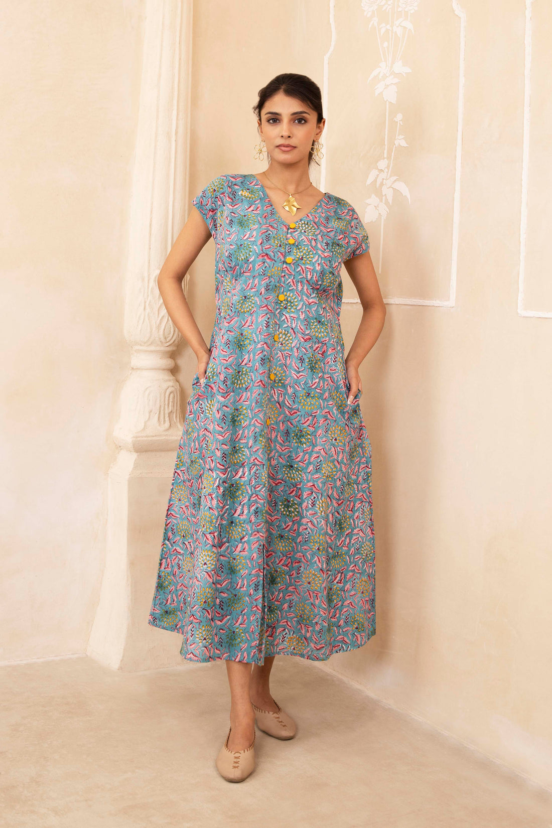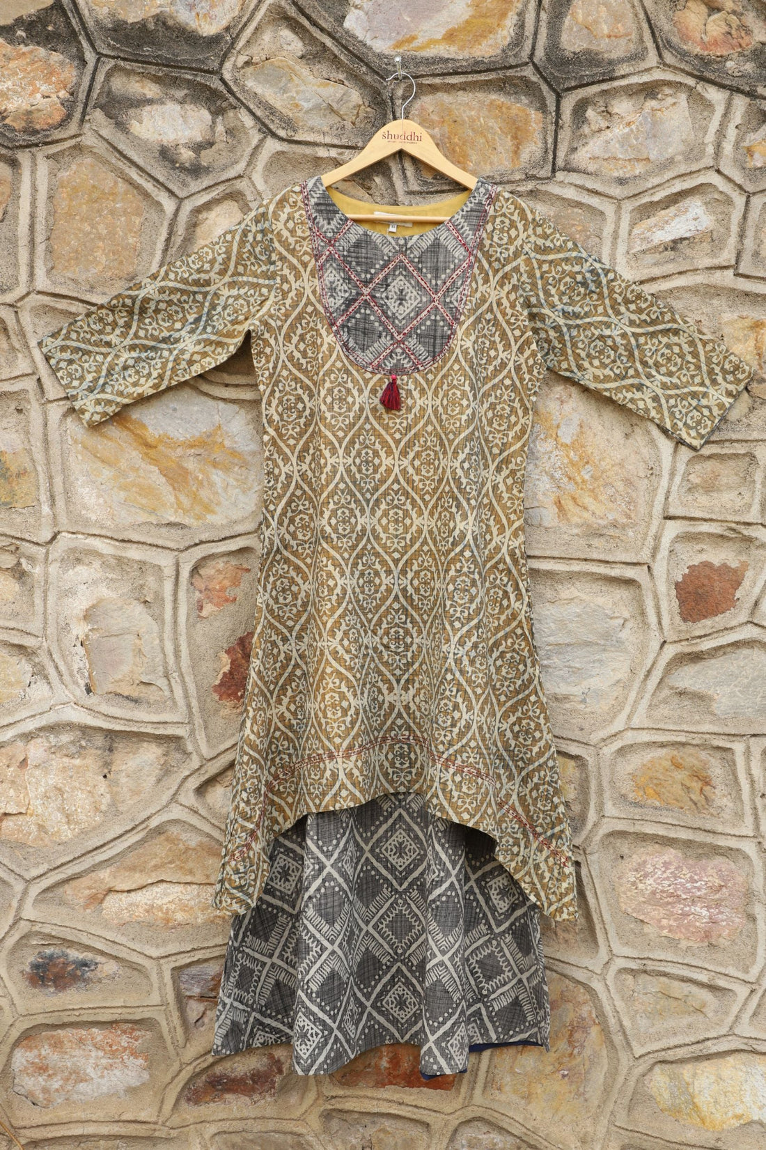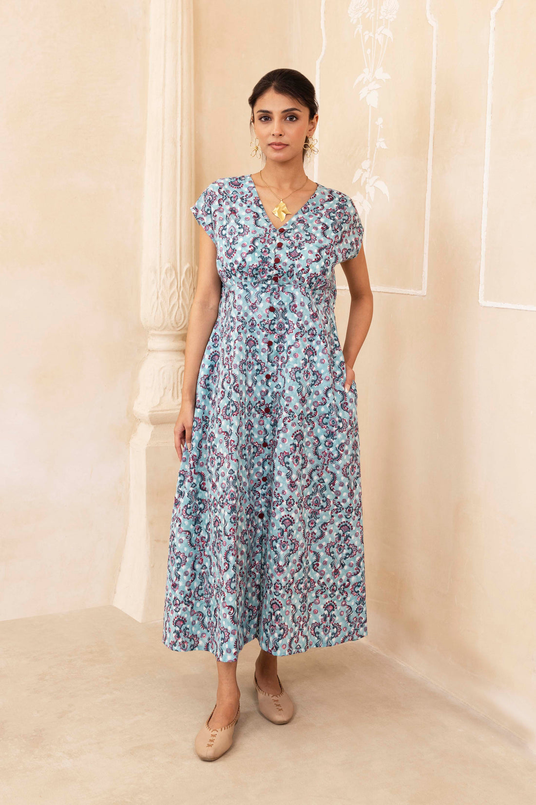 Block Printed Maroon Dress