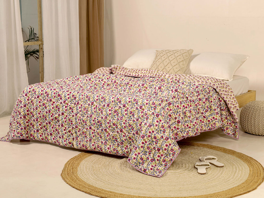 Blue and Maroon Reversible Quilted Bed Razai