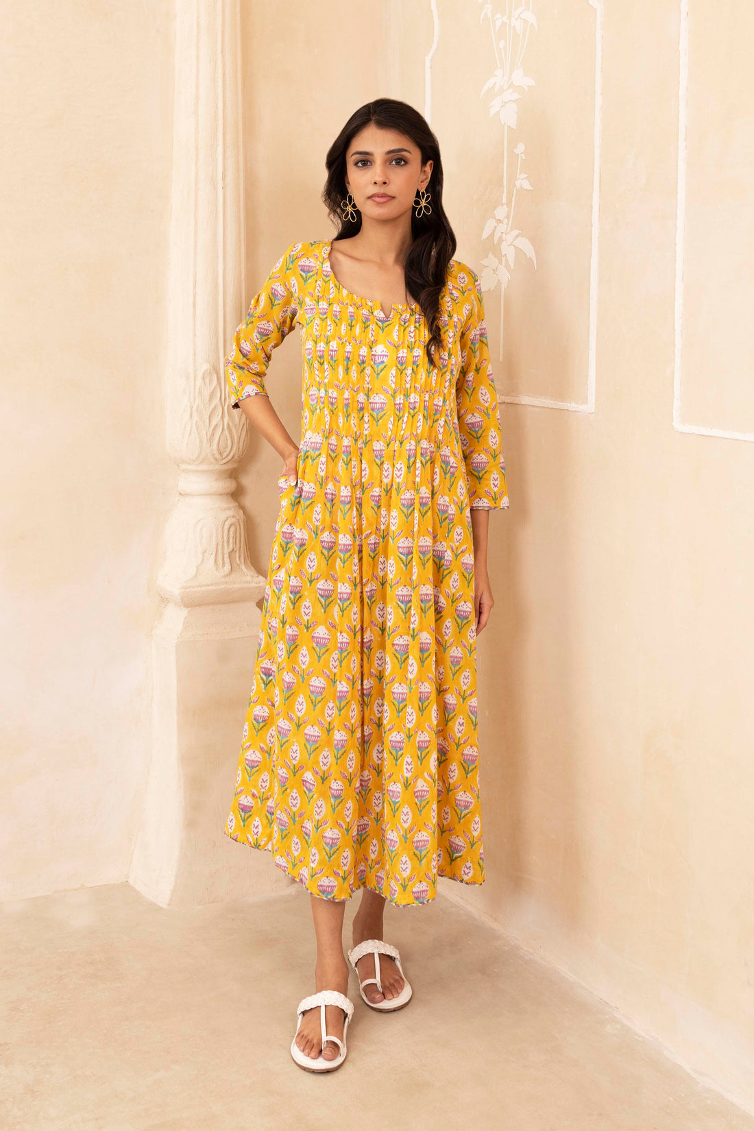 Yellow Pleated Dress