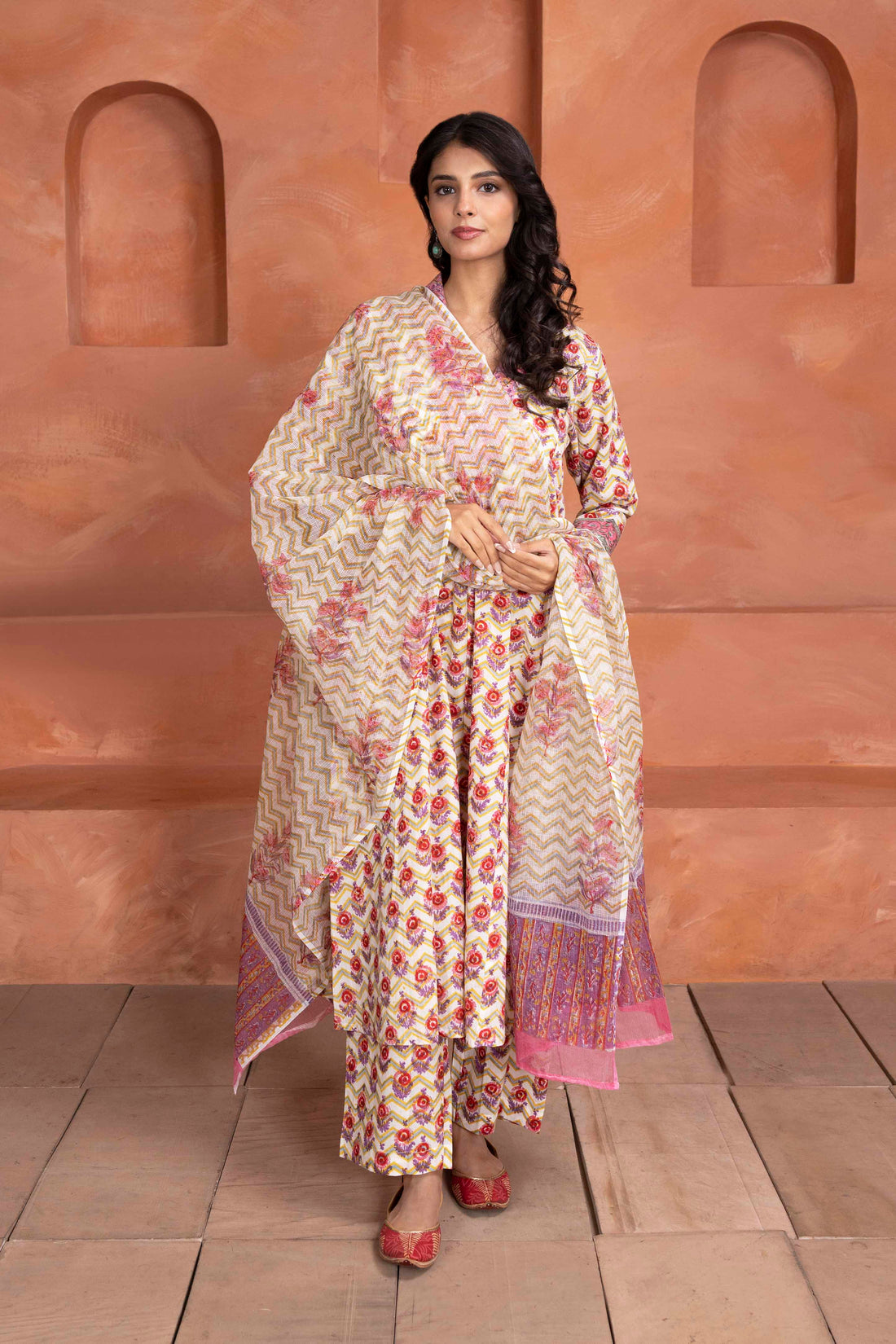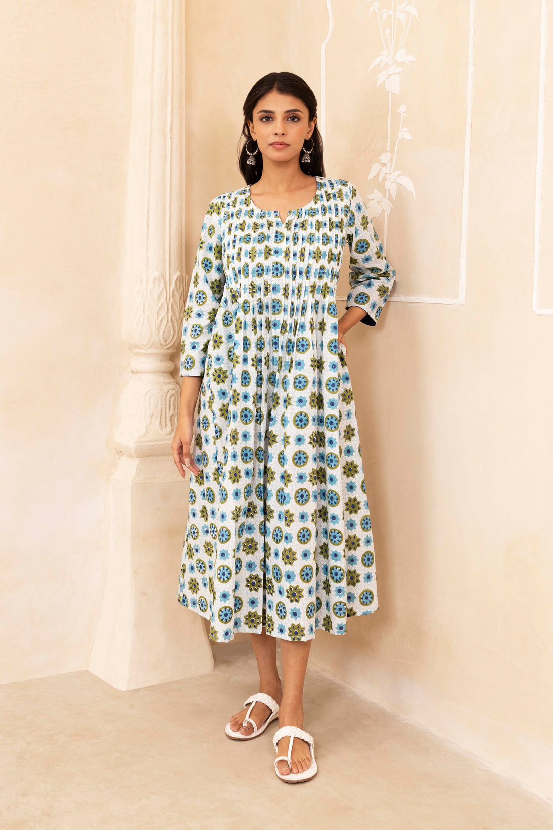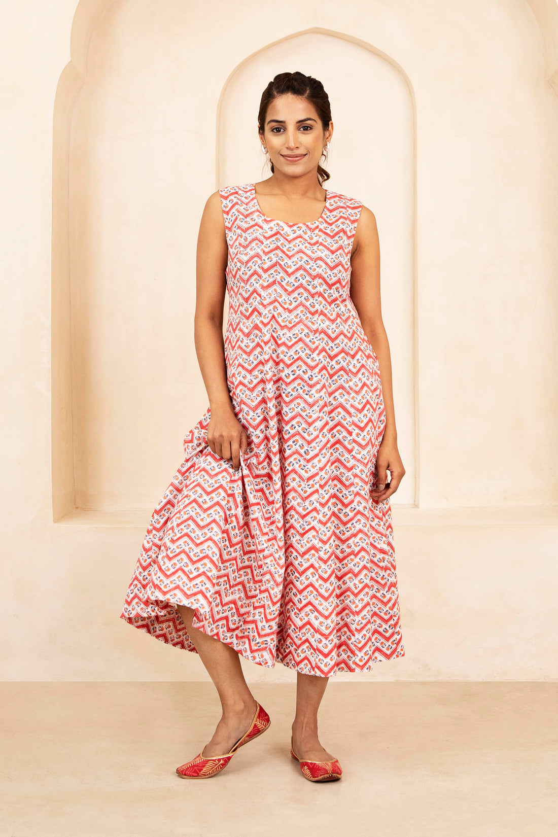 Zigzag Bloom Handblock A-Line Dress