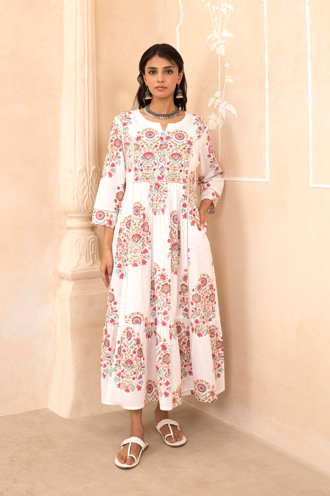 White Mughal Motif Dress