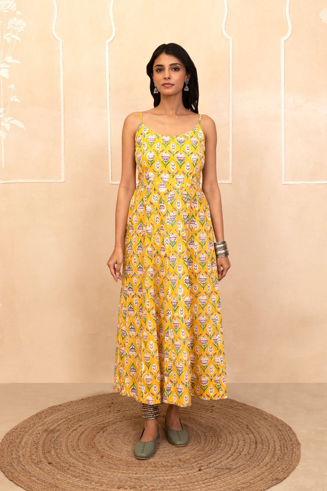 Yellow Handblock Printed Short Kurti