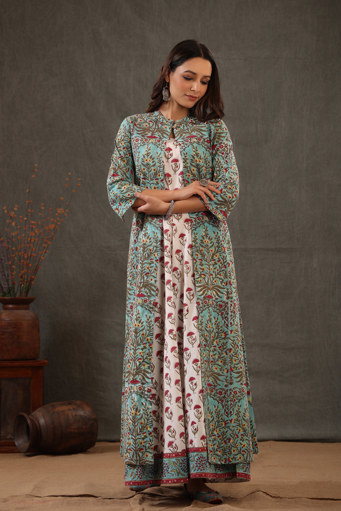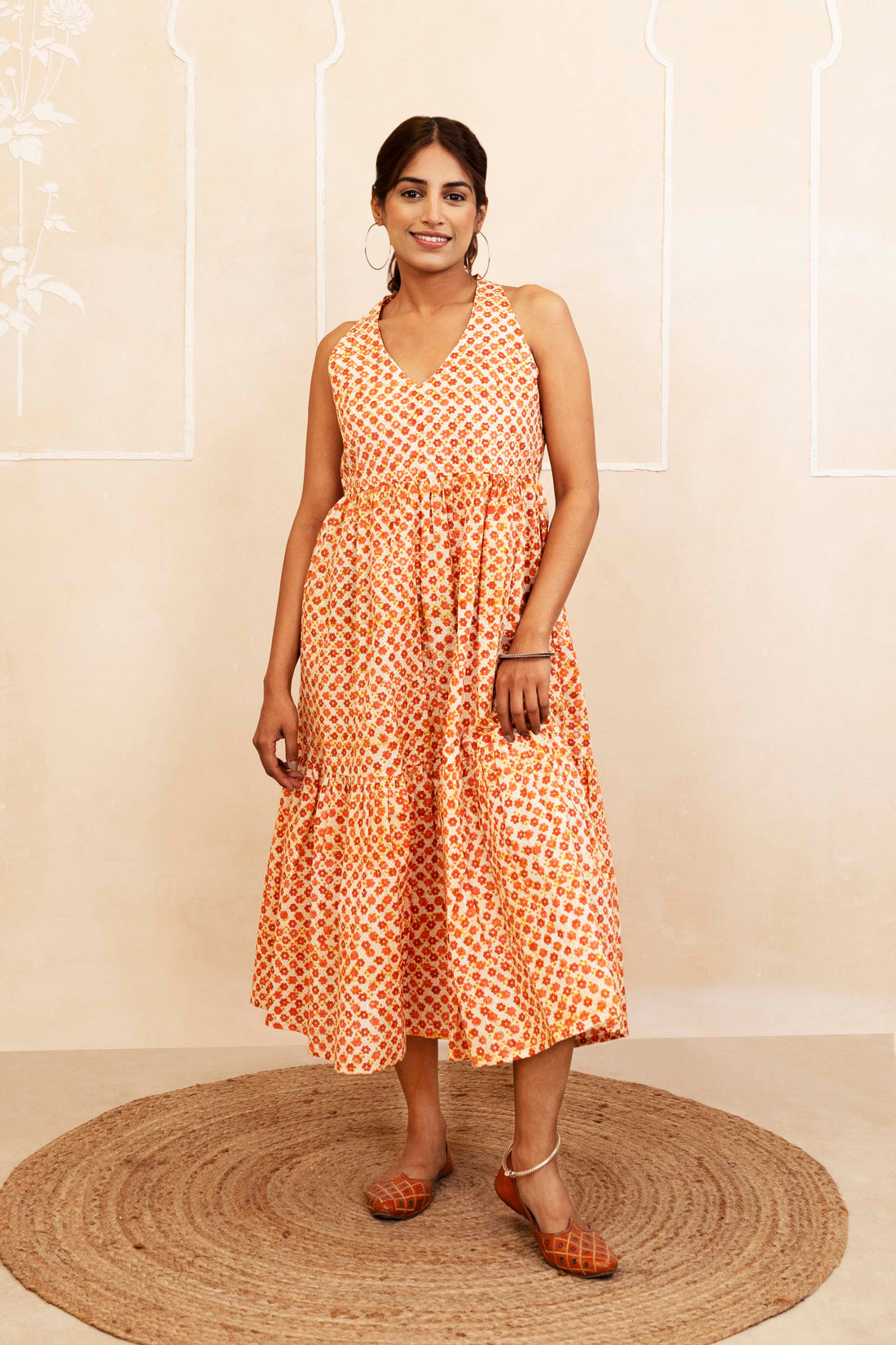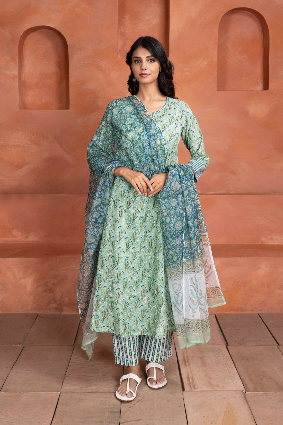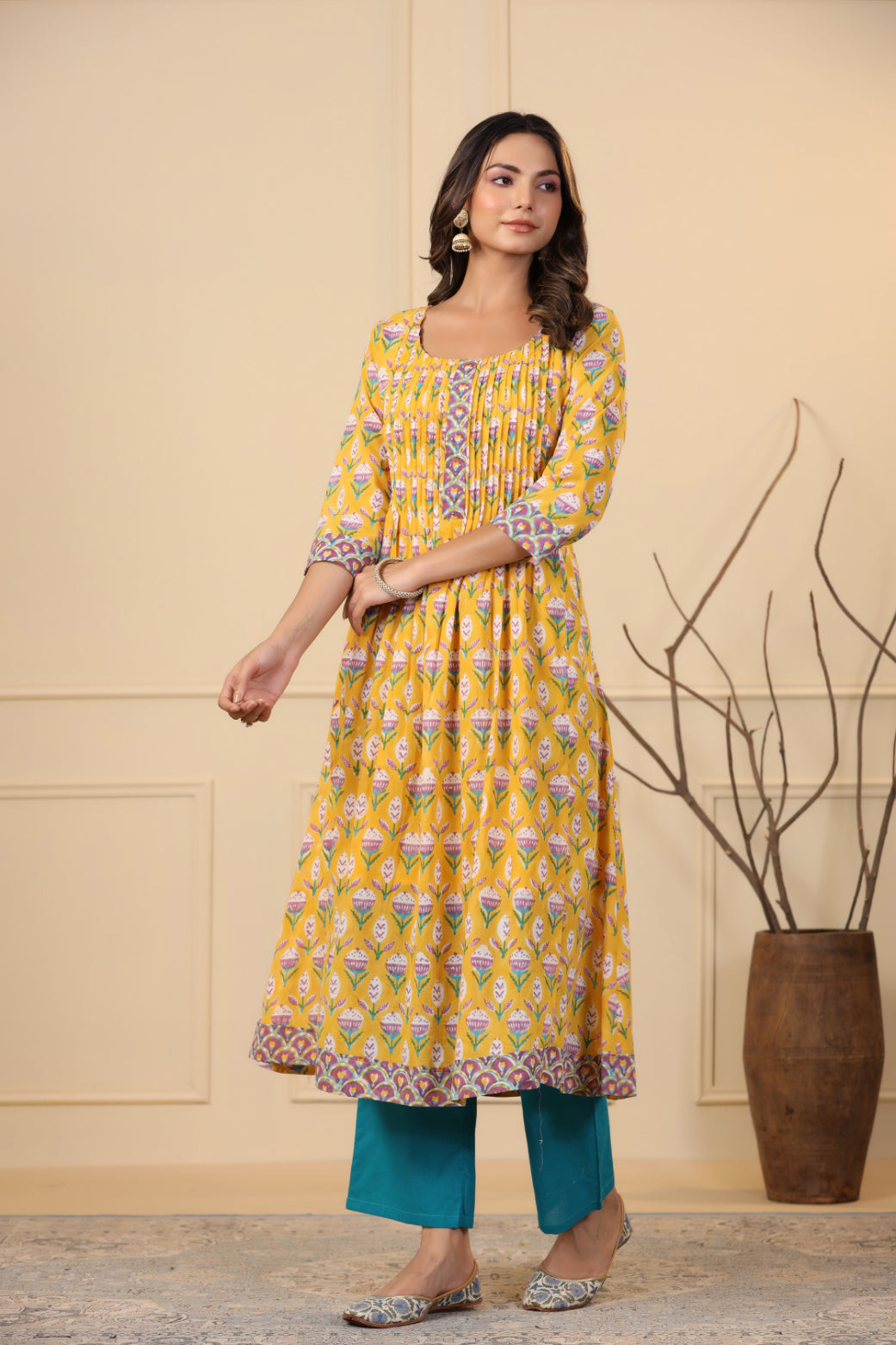 Mustard and Yellow Handblock Printed kurta With Bhandej Duppatta
