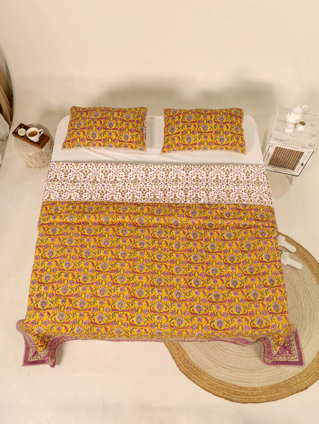 Mustard Yellow and Red Single Bed Reversible Quilted Razai