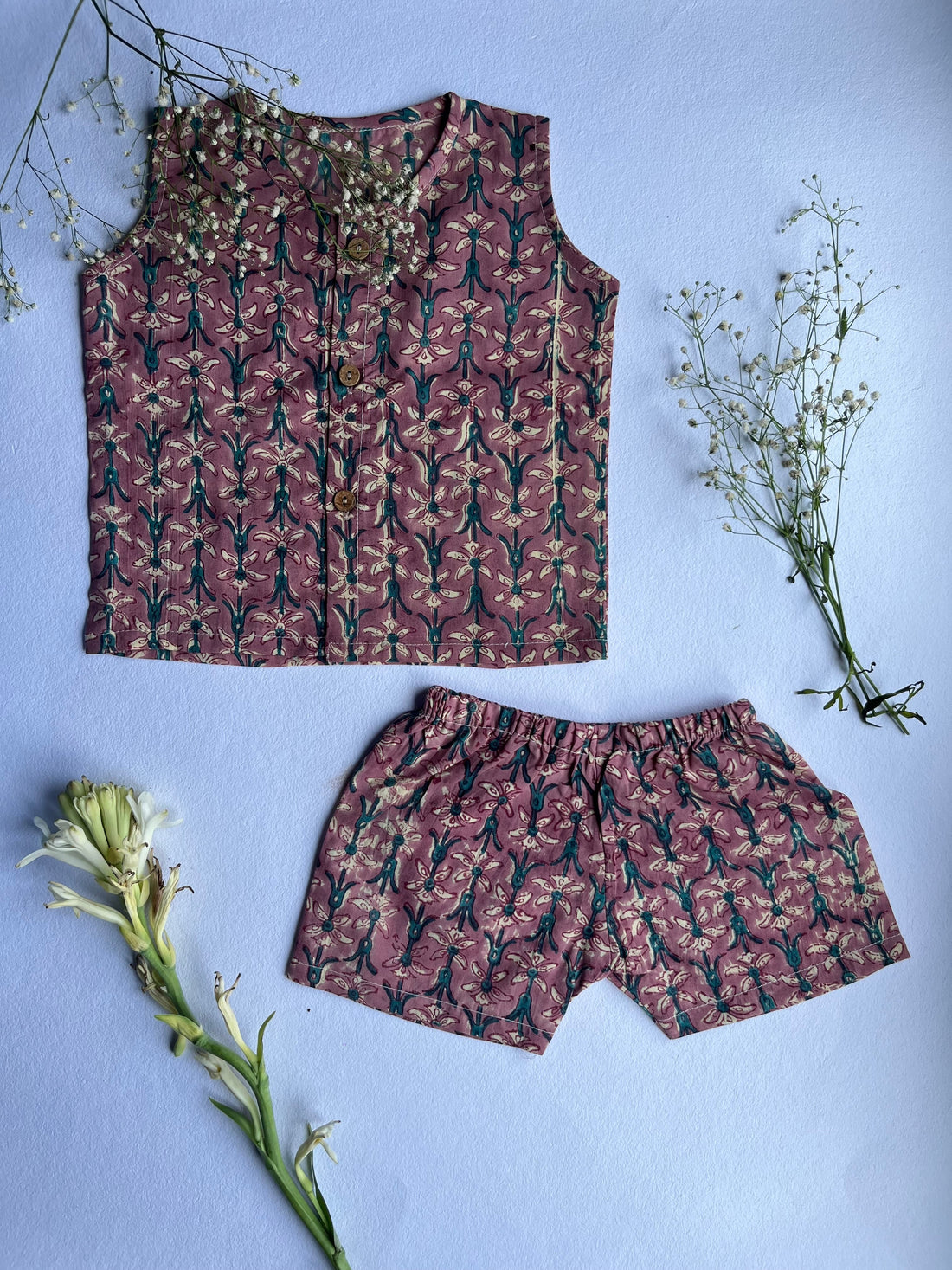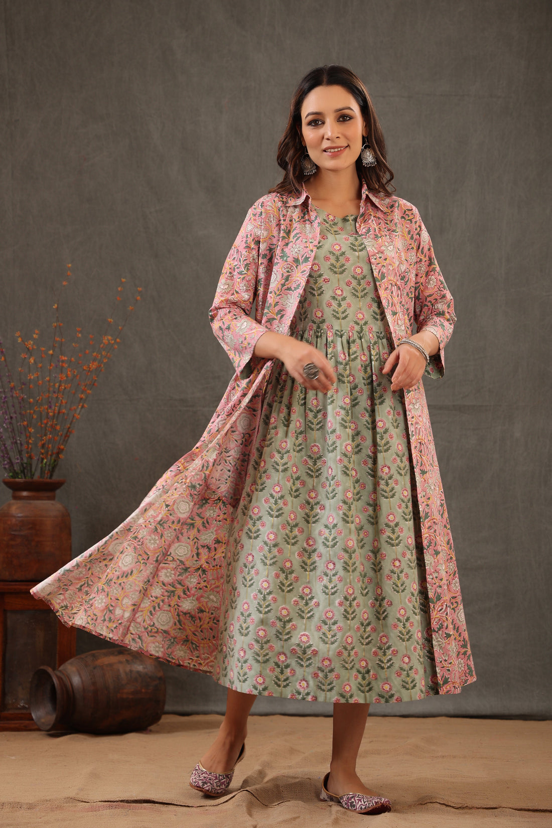 Sapphire Blue with Rouge pink handblock printed anarkali kurta
