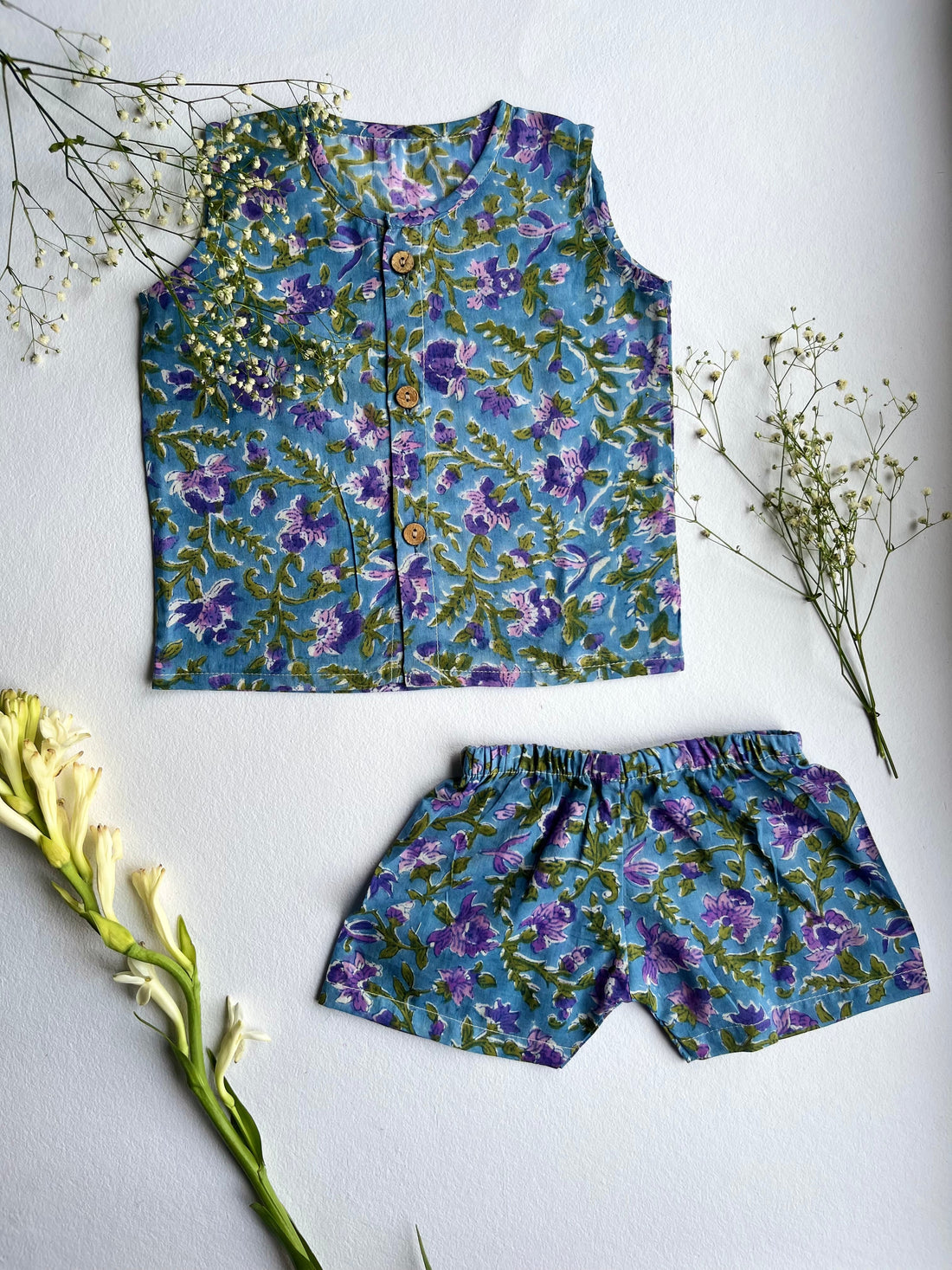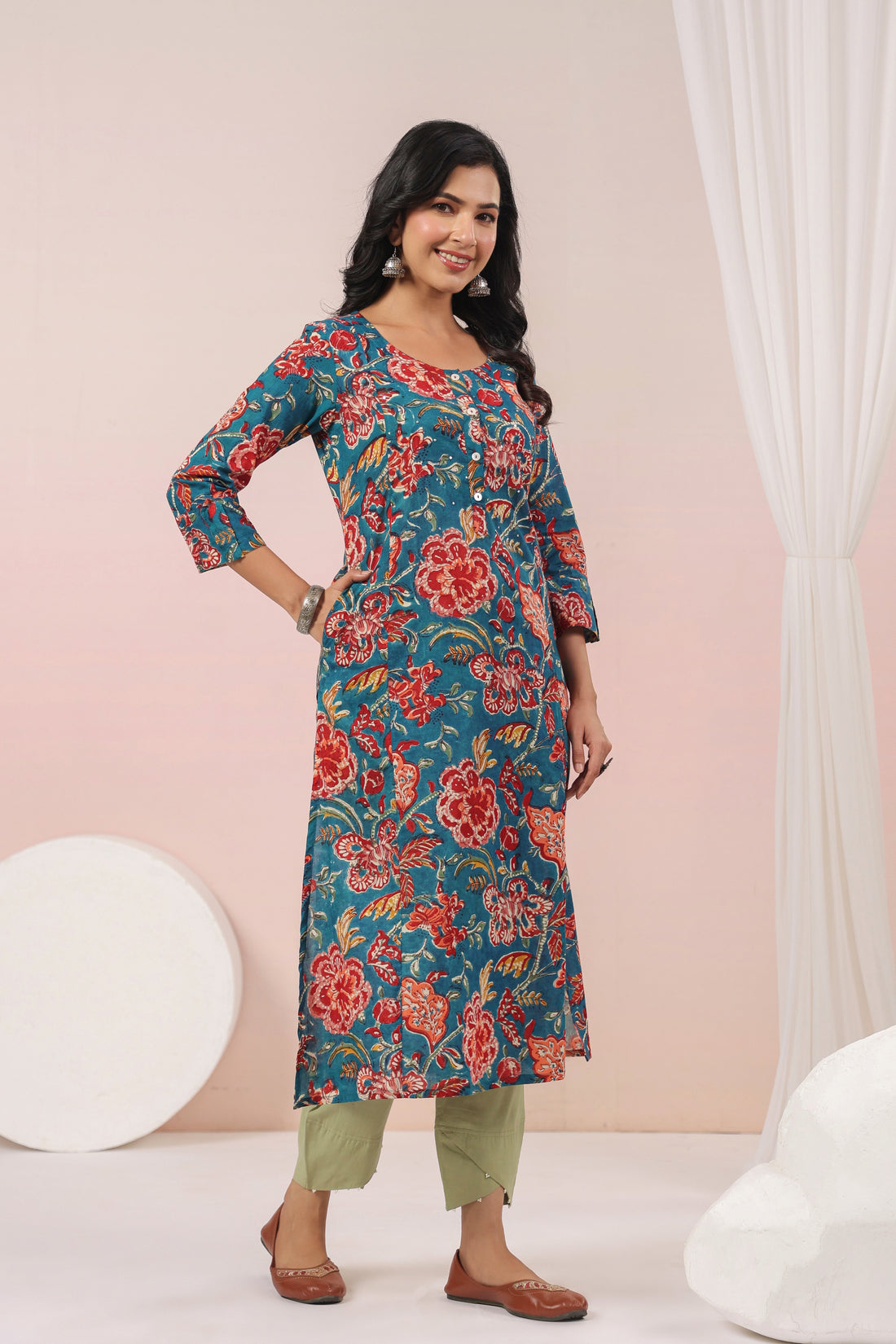 Sapphire Blue with a combination of Tiffany Blue handblock printed kurta