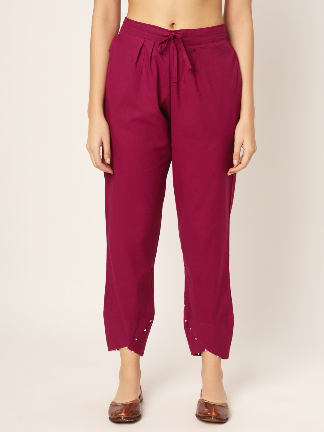 Elevate your everyday style with these tulip pants from Shuddhi. Perfect for the modern woman with a flair for fashion, these pants are set to be your go-to this season. Pair them effortlessly with your preferred top/kurta for a casual yet classy ensemble. This ensemble promises not only ease but also a high glamour quotient, making it a favorite for the season. Indulge in fashion that speaks volumes without compromising on comfort. |