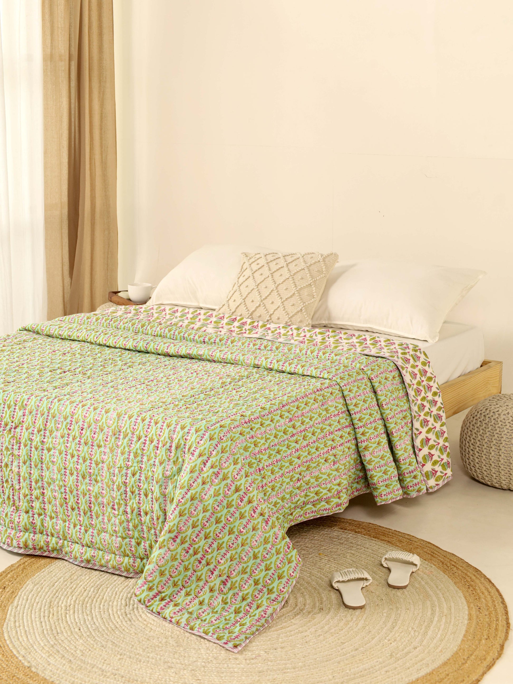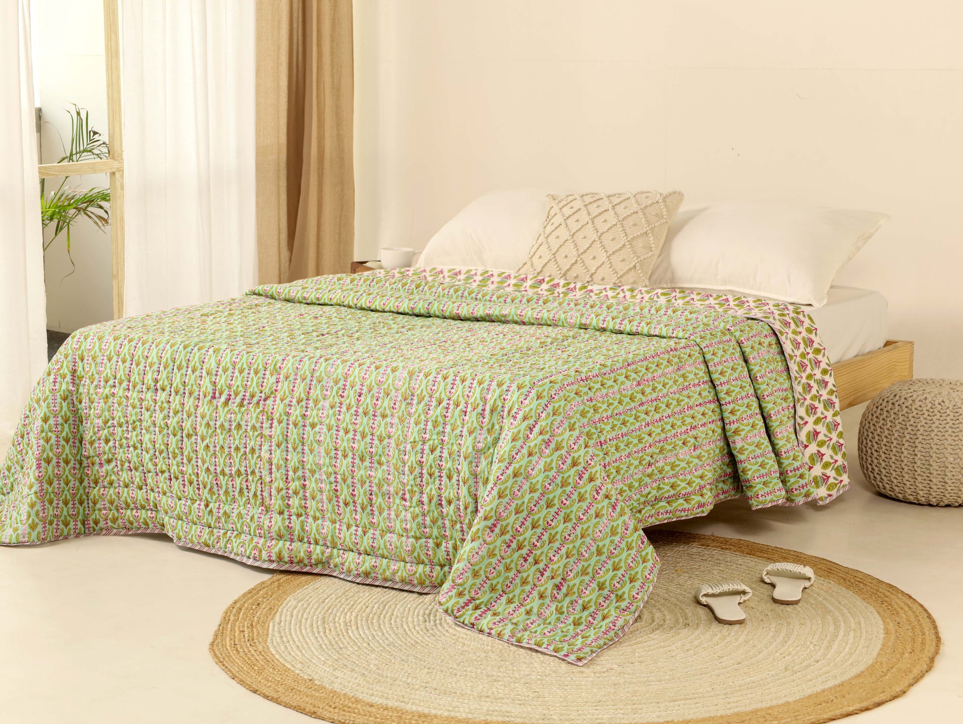 Shuddhi is introducing Reversable Quilted Bed Razai that can be easily used on both sides and are typically made by stitching together layers of fabric with a layer of cotton sheet in between, creating a quilted pattern. They add both warmth and visual appeal to a bed. |