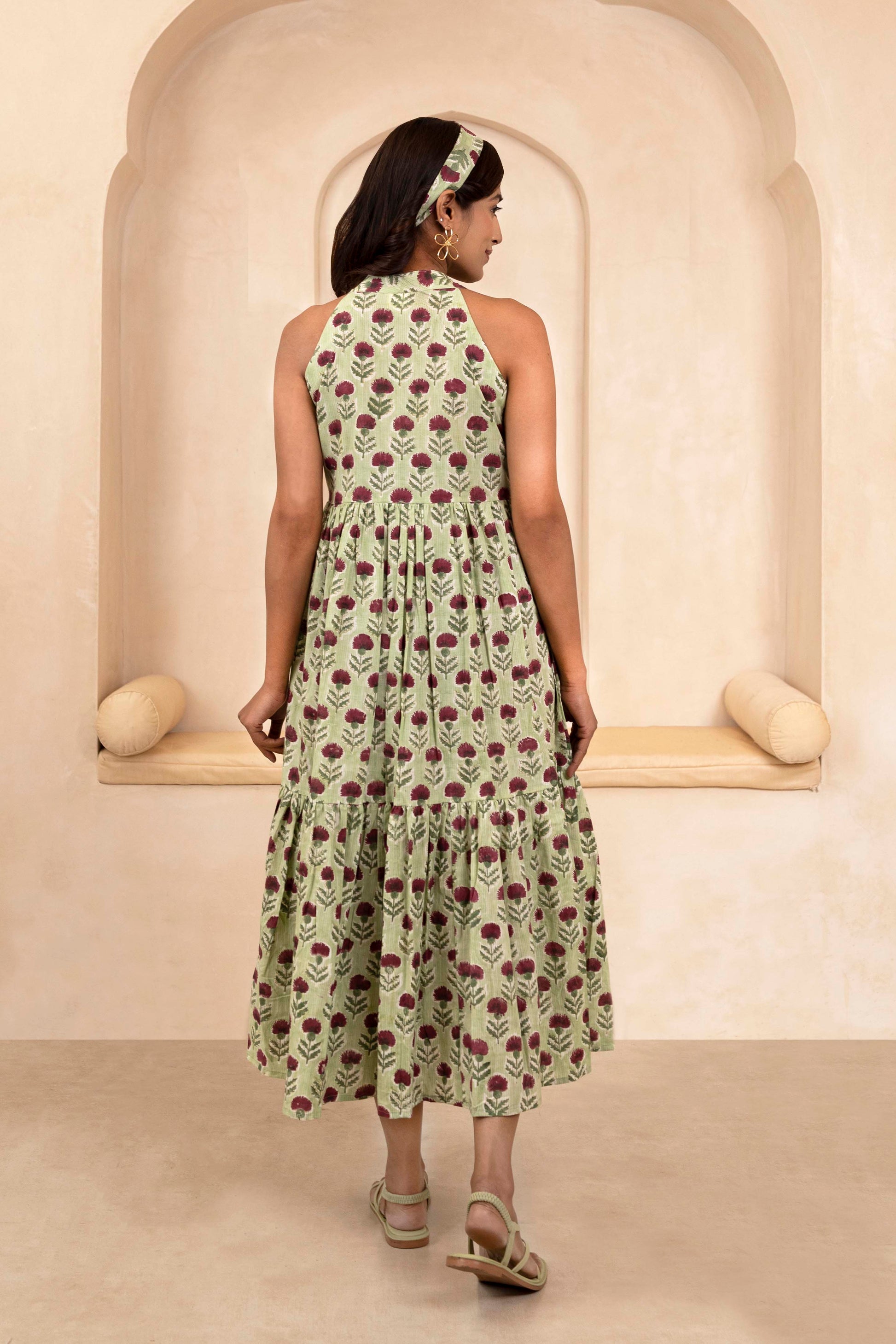 This elegant handblock halterneck dress blends traditional artistry with modern design. Crafted in soft, breathable cotton, it features intricate handblock prints that lend it a timeless ethnic charm. The halterneck style adds a contemporary edge, while the flowing silhouette ensures comfort and grace—perfect for brunches, vacations, or festive evenings with a touch of handcrafted heritage