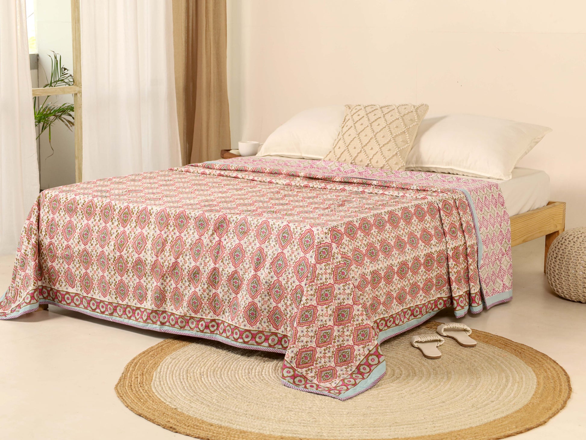 Shuddhi is introducing Dohar Reversible Bed Cover. Dohar Reversible Bed Cover that can be used on both sides, is a lightweight, three-layered blanket that typically consists of two outer layers of fabric stitched together with a layer of cotton filling in between them. Dohars are known for their comfort and breathability, making them suitable for various seasons. |