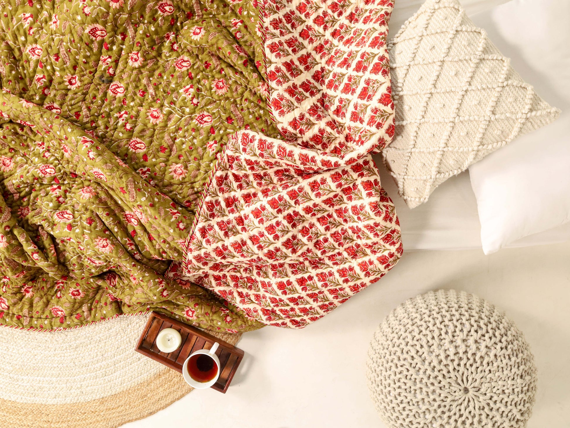 Shuddhi is introducing Single Bed Reversable Quilted Razai that can be easily used on both sides and are typically made by stitching together layers of fabric with a layer of cotton sheet in between, creating a quilted pattern. They add both warmth and visual appeal to a bed. |