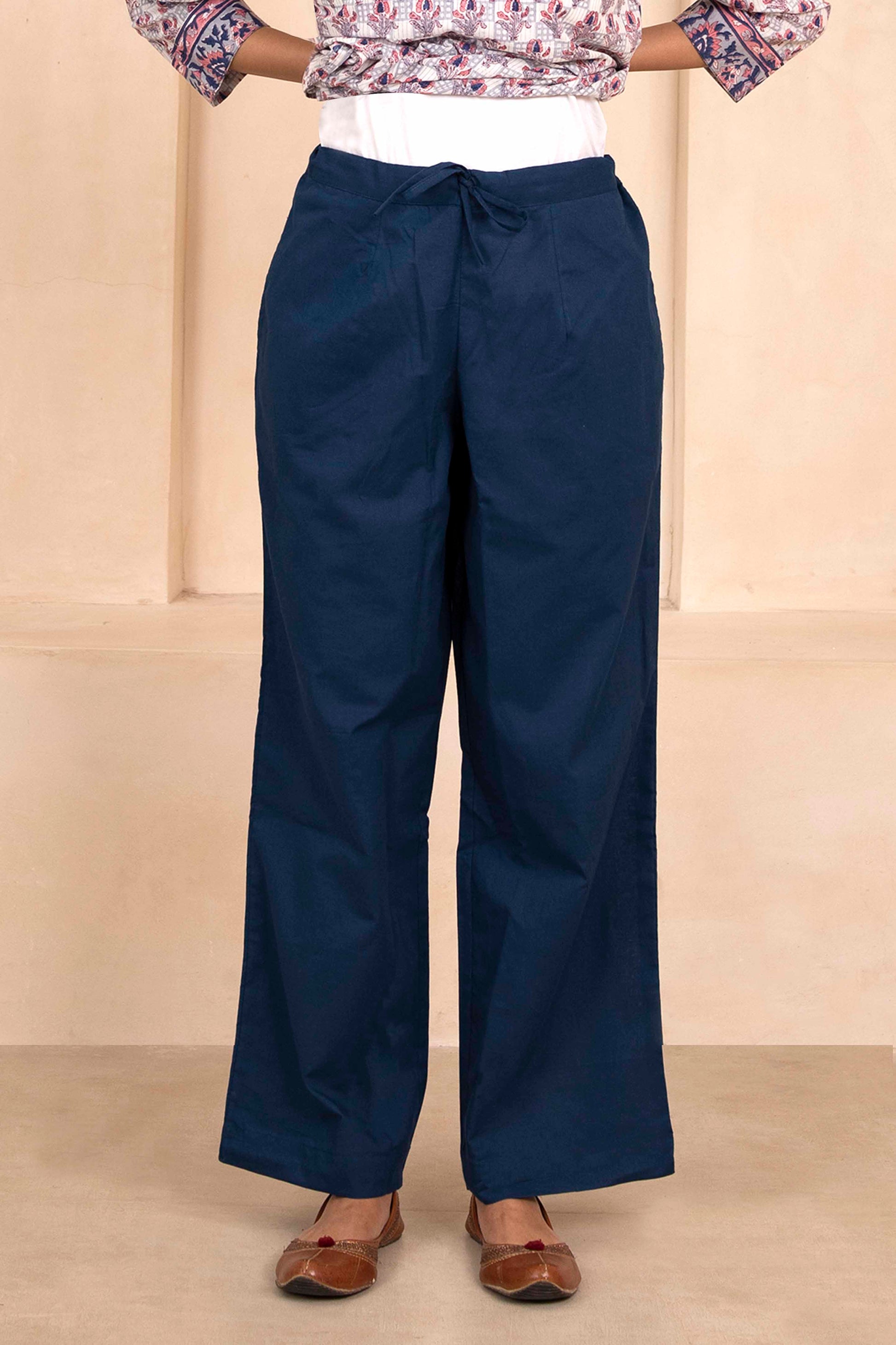 Effortlessly elegant and endlessly versatile, our Navy Blue Palazzo Pant is crafted in breathable cotton for all-day comfort and style. Designed with a flattering mid-rise fit, the pant features a clean front with a functional drawstring and a softly gathered elasticated waistband at the back—offering both structure and ease.
