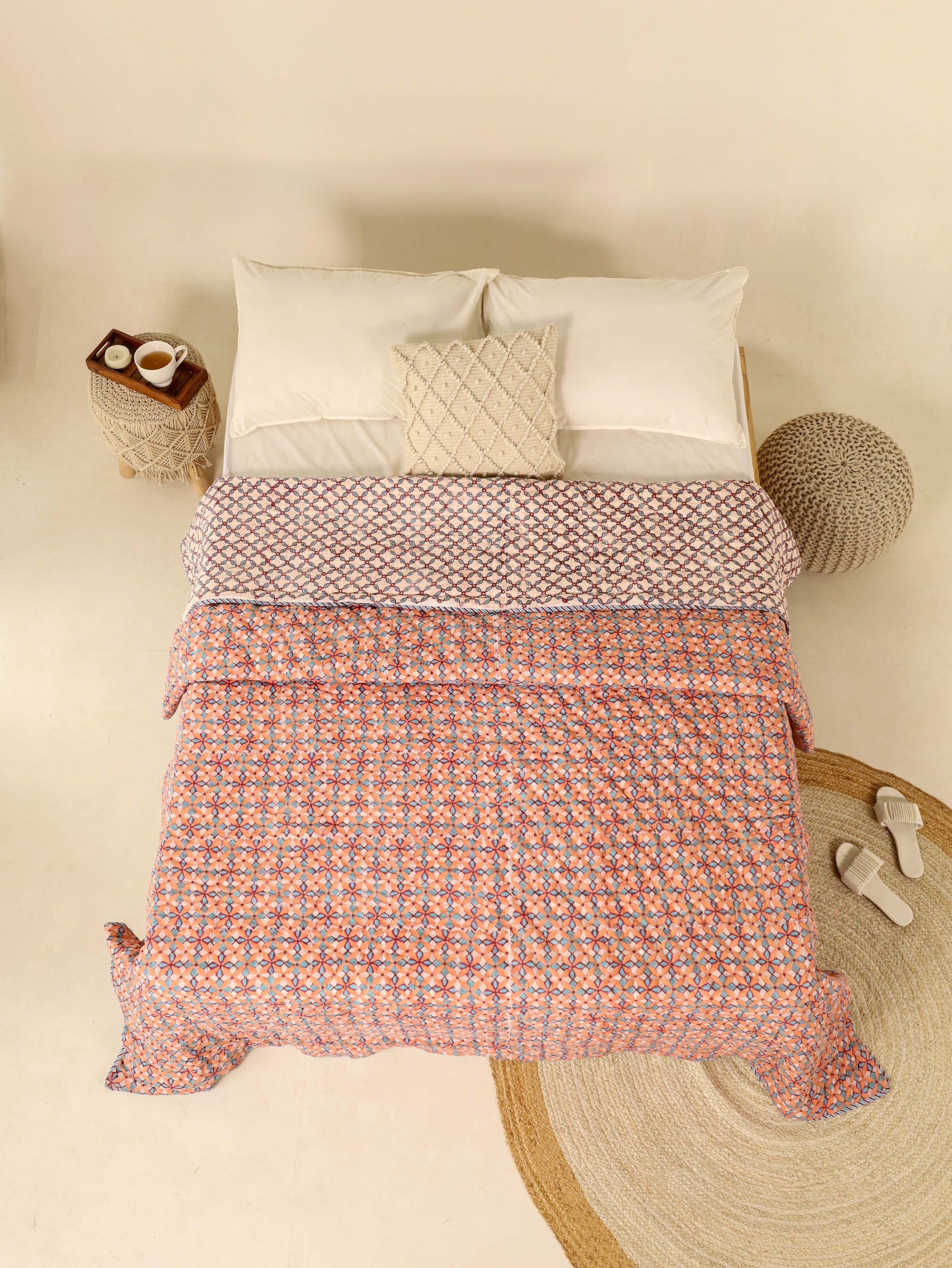 Shuddhi is introducing Reversable Quilted Bed Razai that can be easily used on both sides and are typically made by stitching together layers of fabric with a layer of cotton sheet in between, creating a quilted pattern. They add both warmth and visual appeal to a bed. |