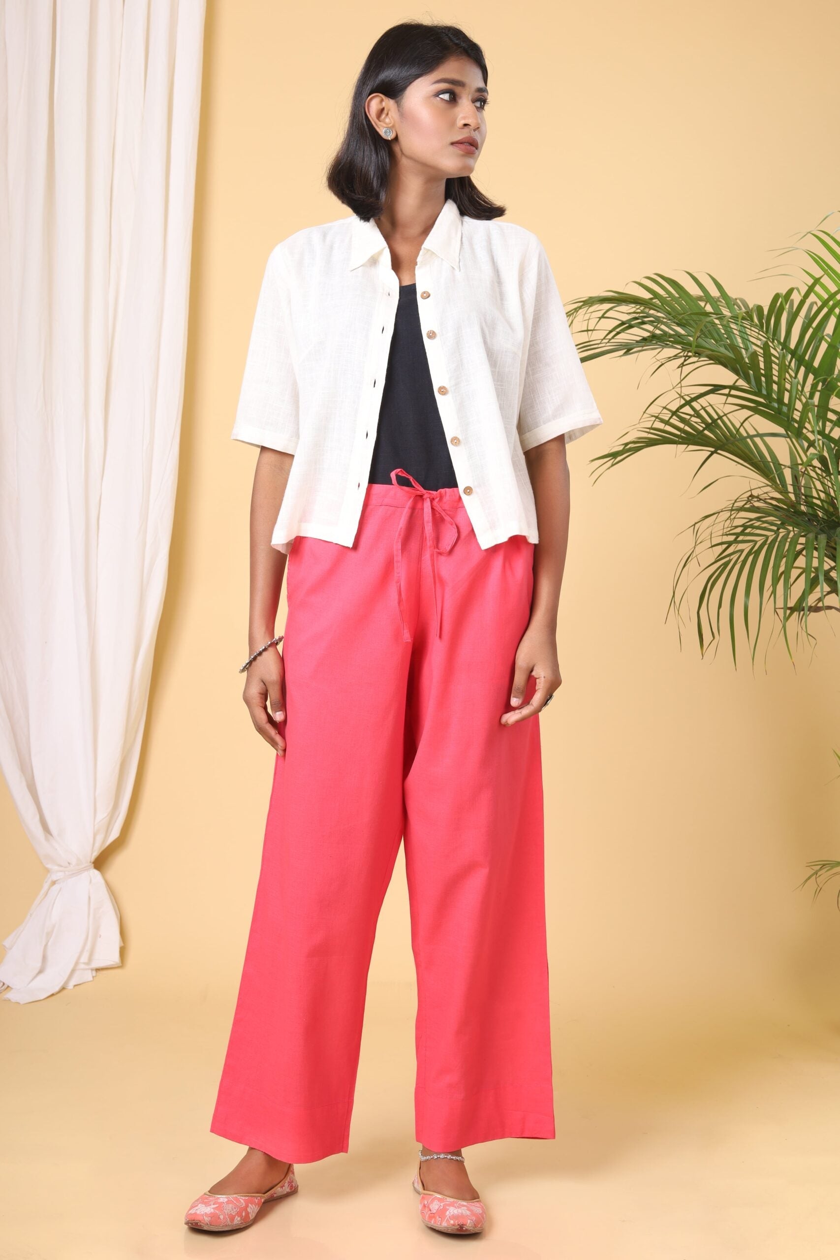 These rouge pink cotton Casual pants is super breathable and light, the perfect pick for day-wear!
