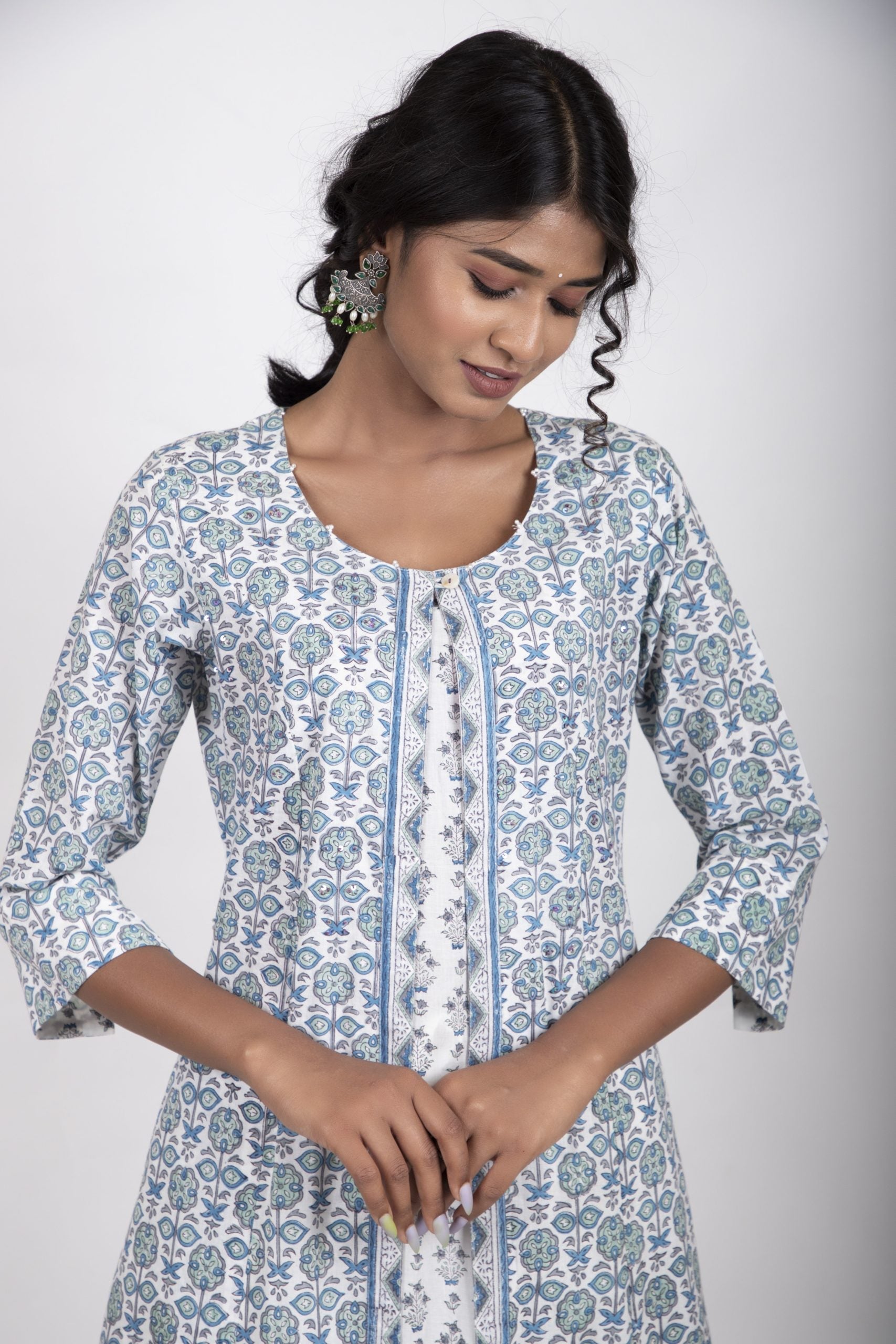 A timeless sapphire blue with a combination of tiffany blue handblock printed kurta