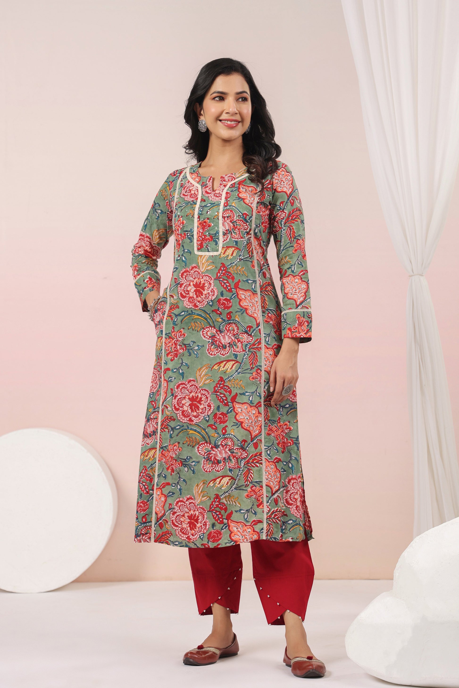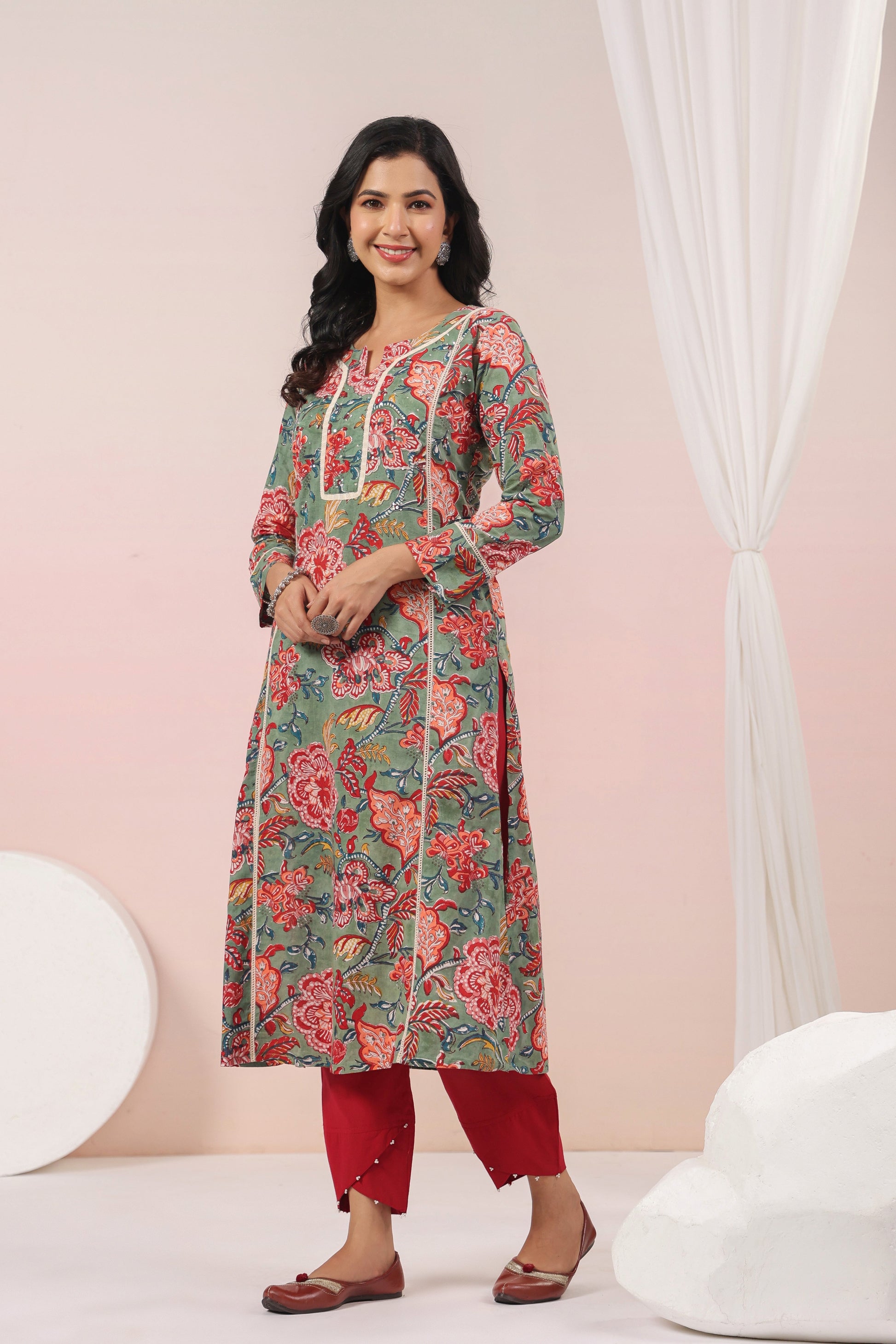 Shuddhi Green and Red Semi Aline