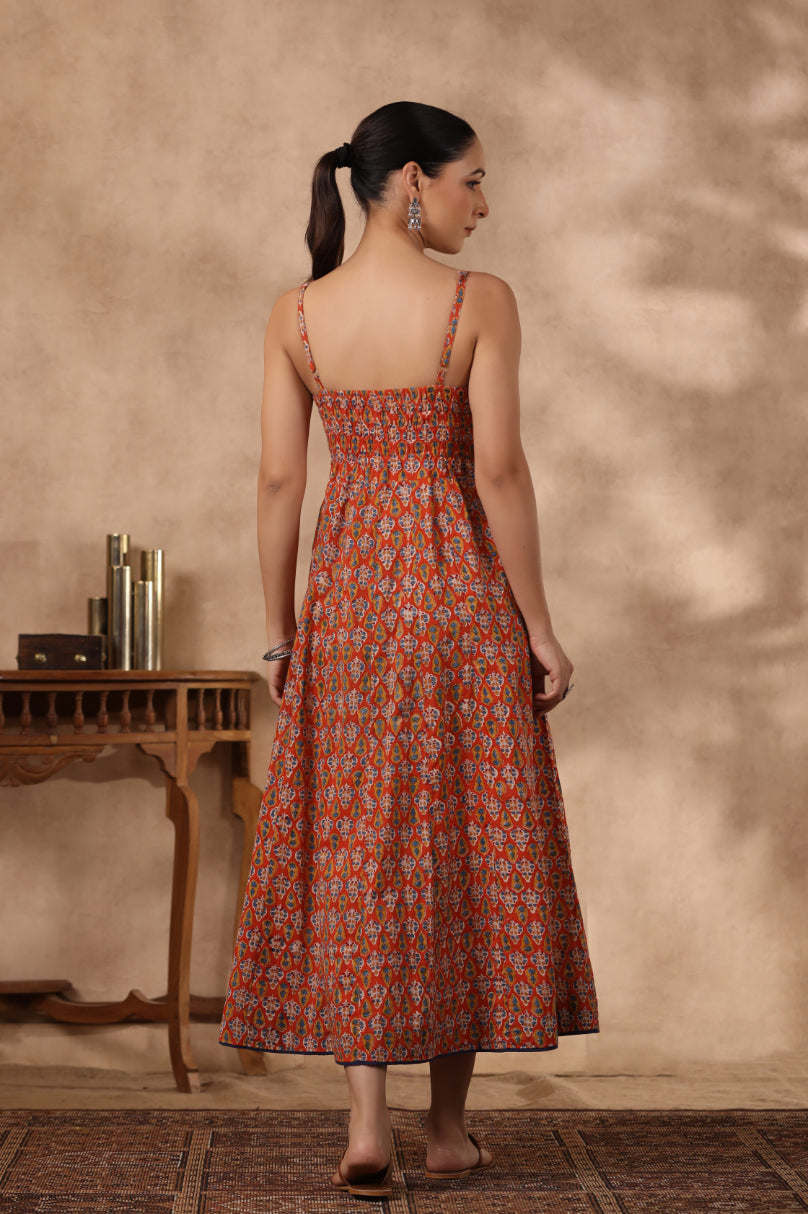 Our classic orange and blue spaghetti dress comes with a combination of blue and yellow . This long spaghetti dress with kalis comes with adjustable strap..