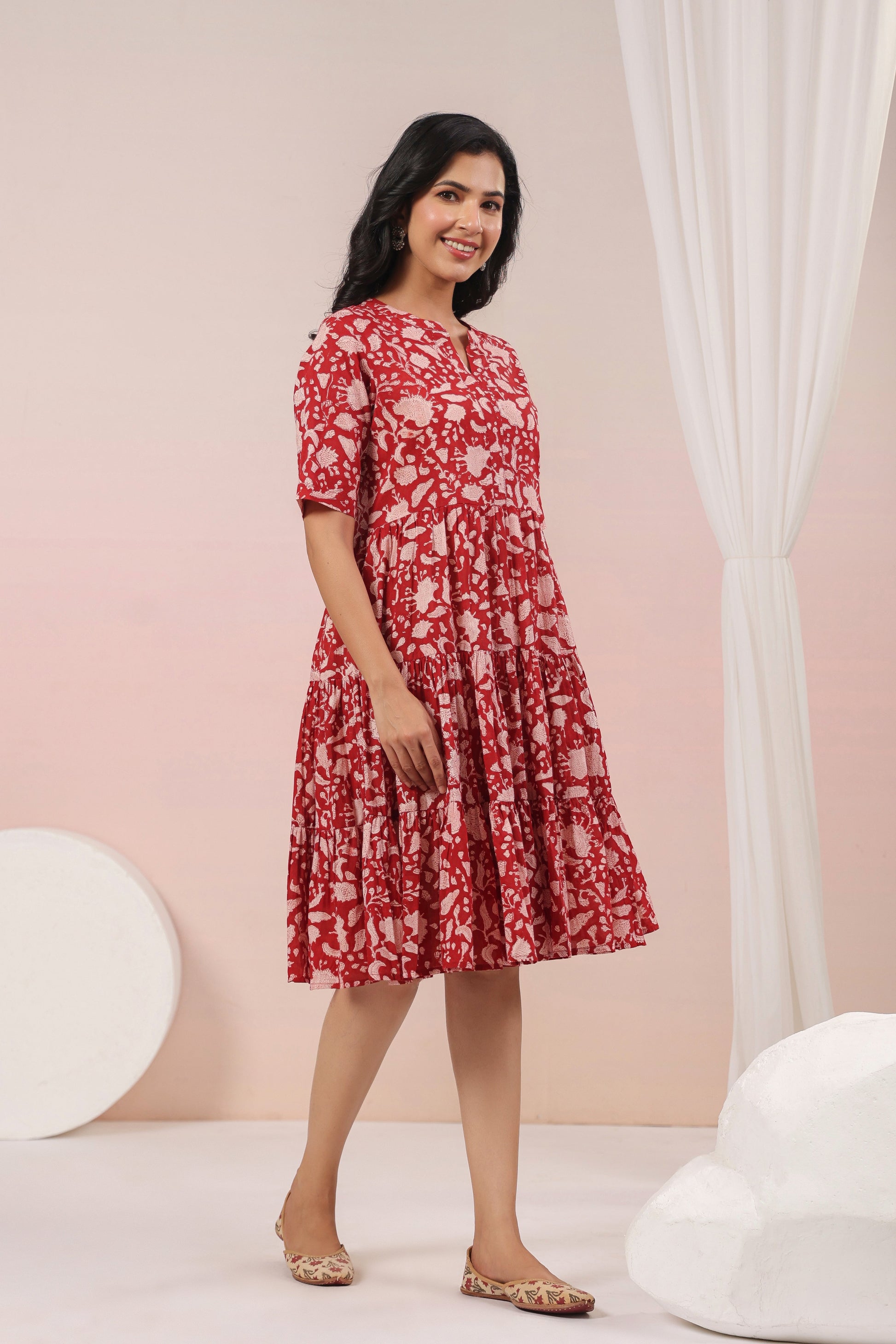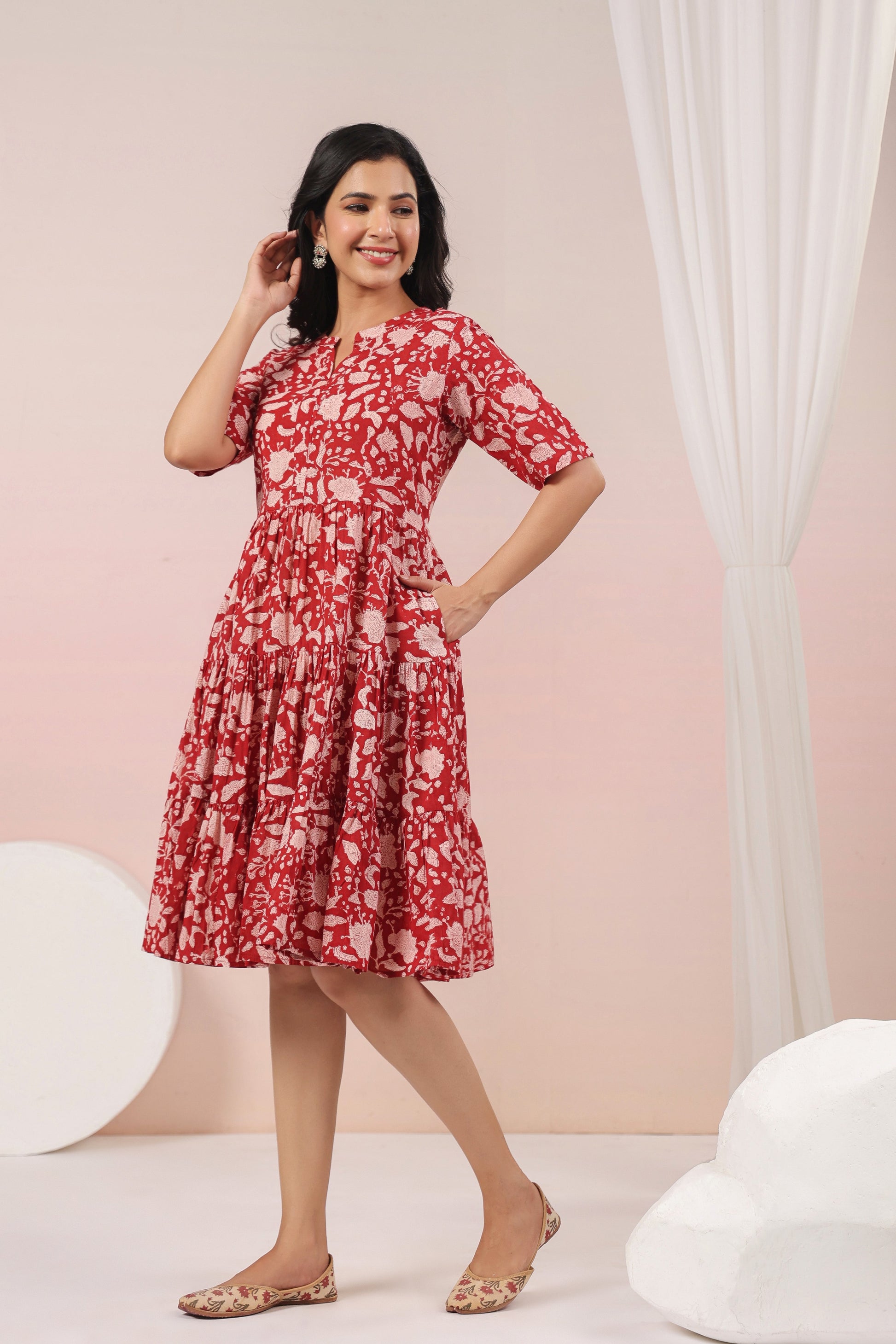 The Red and Beige Tier Dress features a vibrant color palette that beautifully blends tradition with contemporary style. Its flattering silhouette enhances the figure, while intricate patterns and detailing add a touch of elegance. Perfect for festive occasions or casual outings, this vesatile is a versatile addition to any wardrobe. The soft fabric ensures comfort, making it a go-to choice for all-day wear.