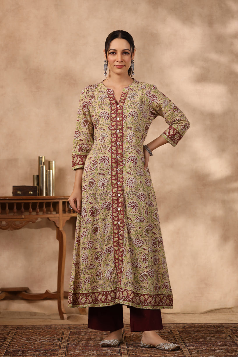 Shuddhi Yellow and Green A line kurta