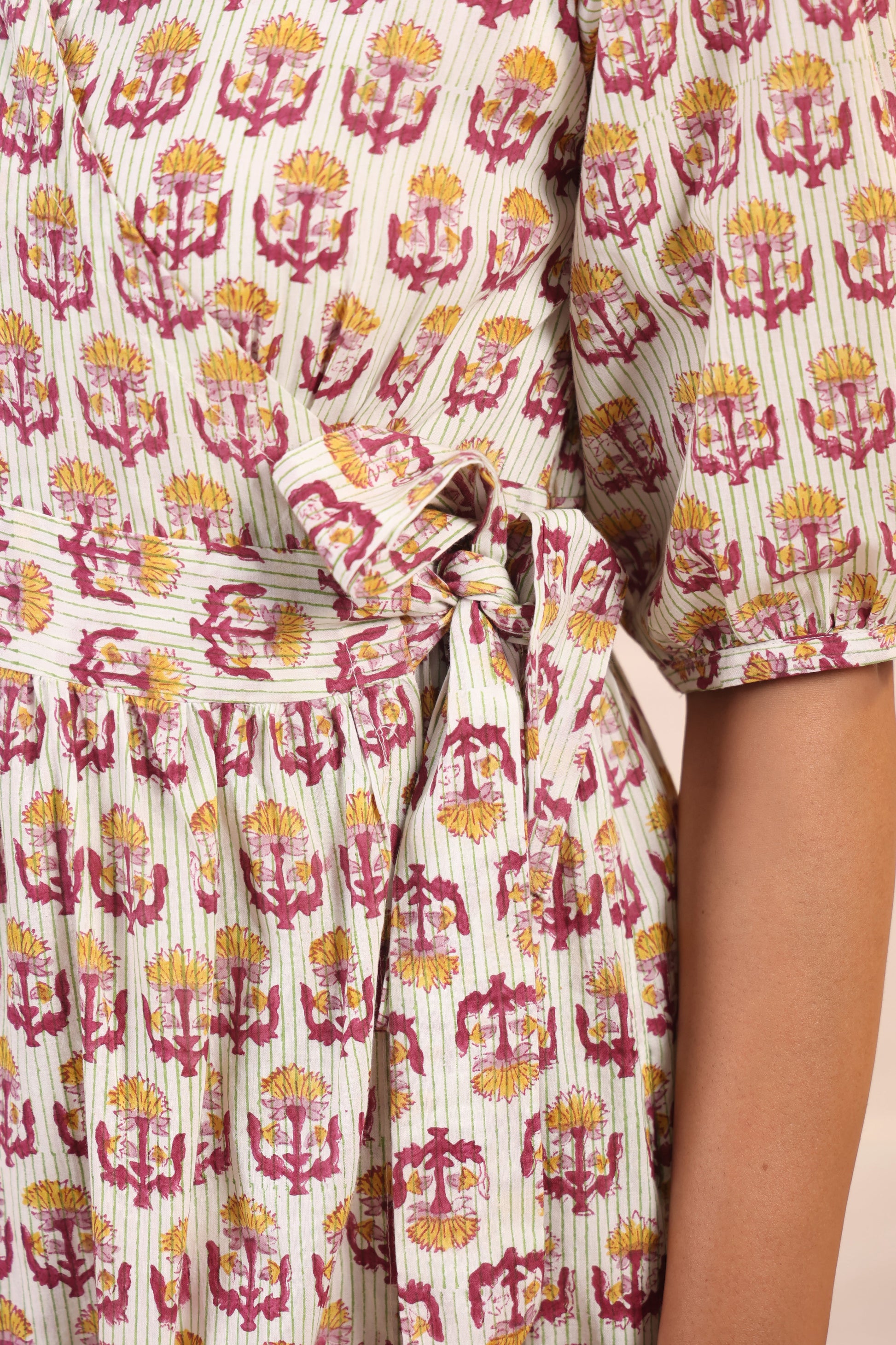 Shuddhi Yellow and Pink Tier Wrap Dress