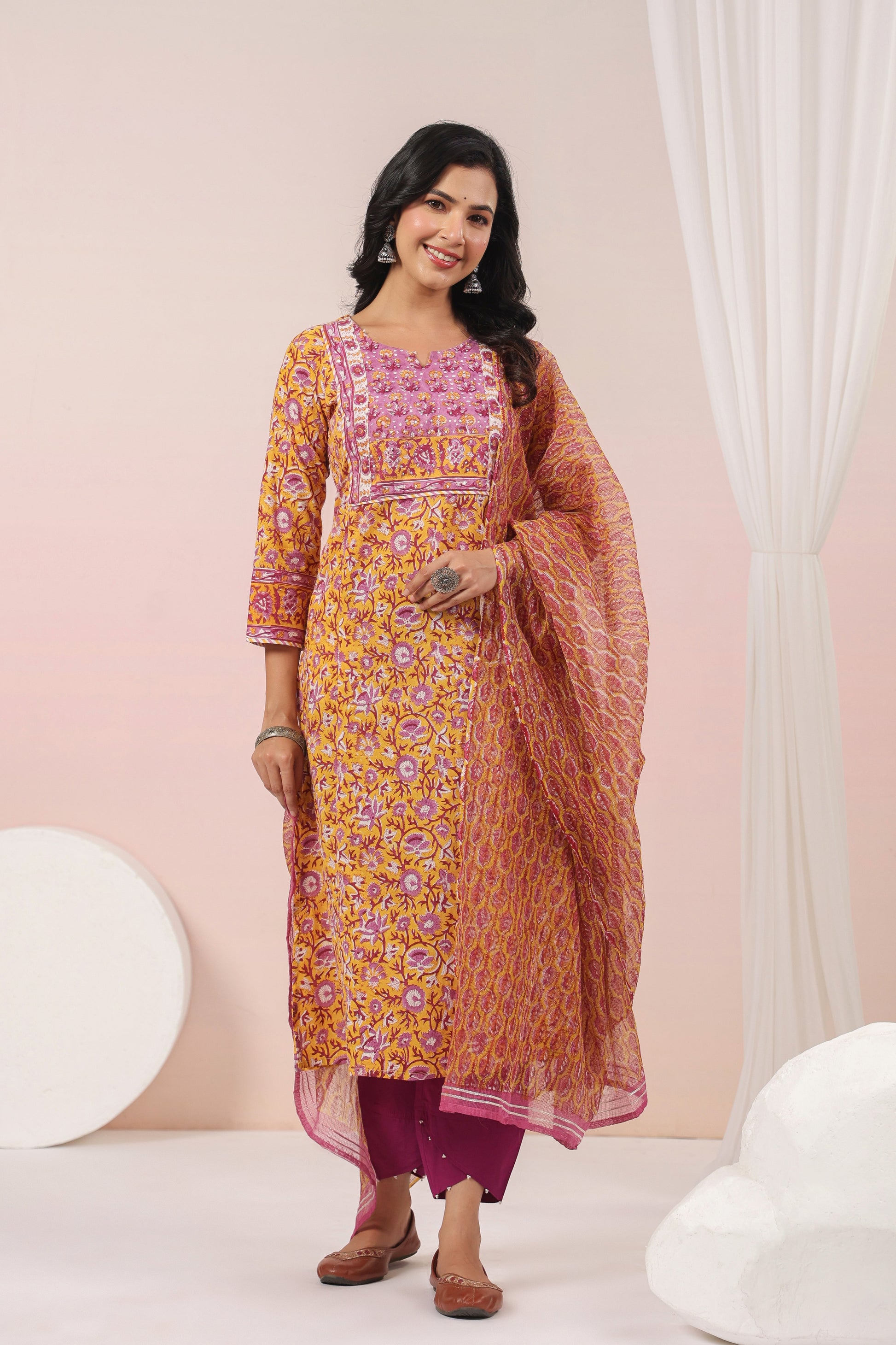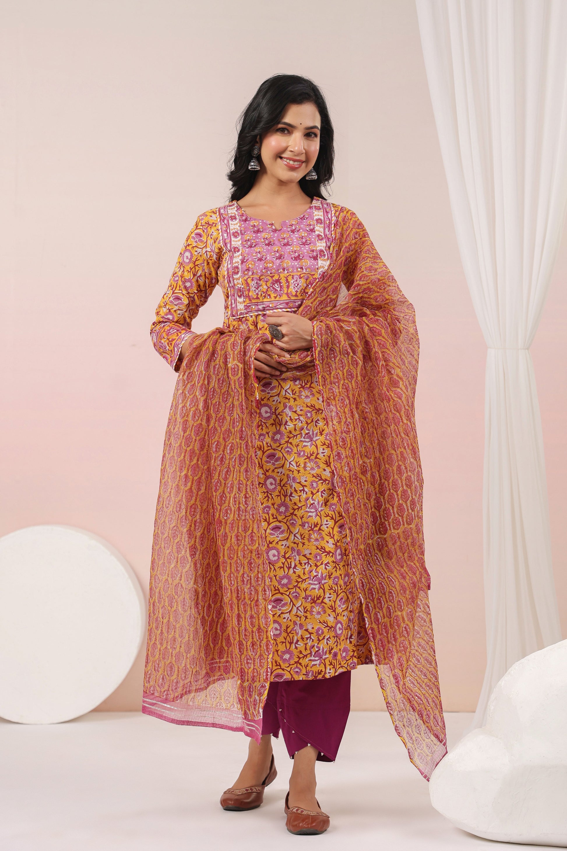 The Yellow Kurta and Duppatta set features a vibrant color palette that beautifully blends tradition with contemporary style. Its flattering silhouette enhances the figure, while intricate patterns and detailing add a touch of elegance. Perfect for festive occasions or casual outings, this versatile is a versatile addition to any wardrobe. The soft fabric ensures comfort, making it a go-to choice for all-day wear.