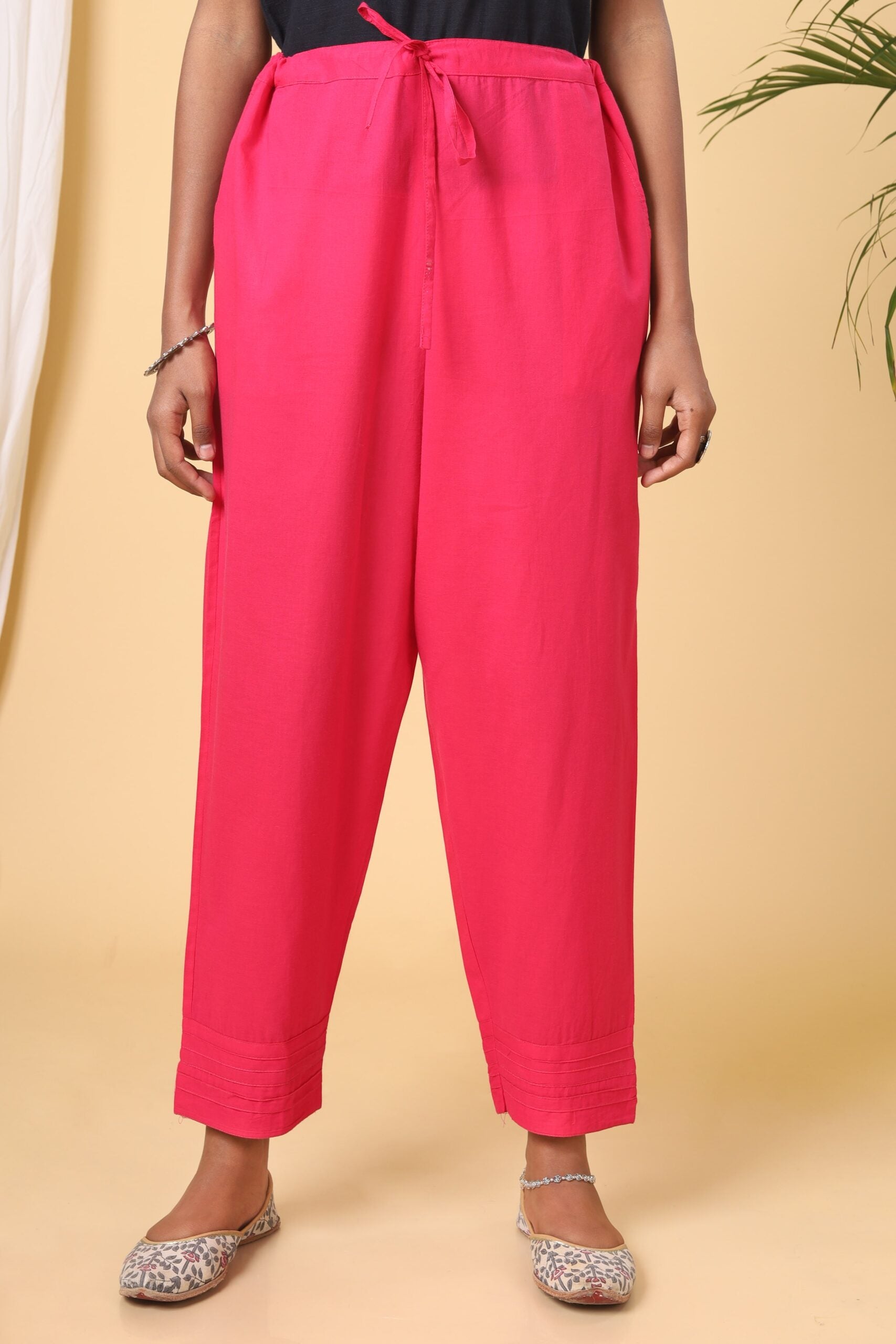 This Strawberry Pink Cotton Casual Pants is super breathable and light, the perfect pick for day-wear!
