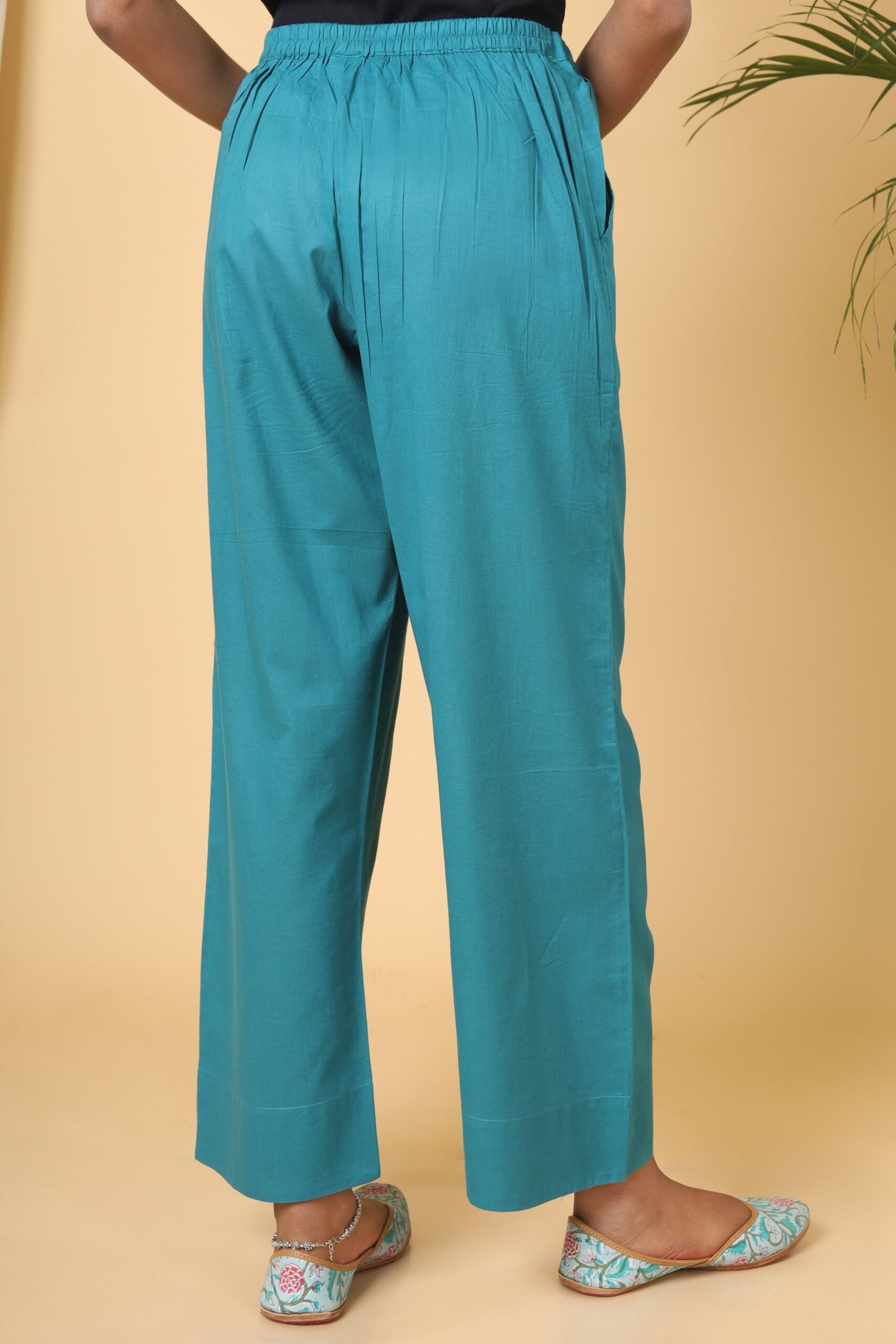 This Teal Green Cotton Casual Pant is super breathable and light, the perfect pick for day-wear!