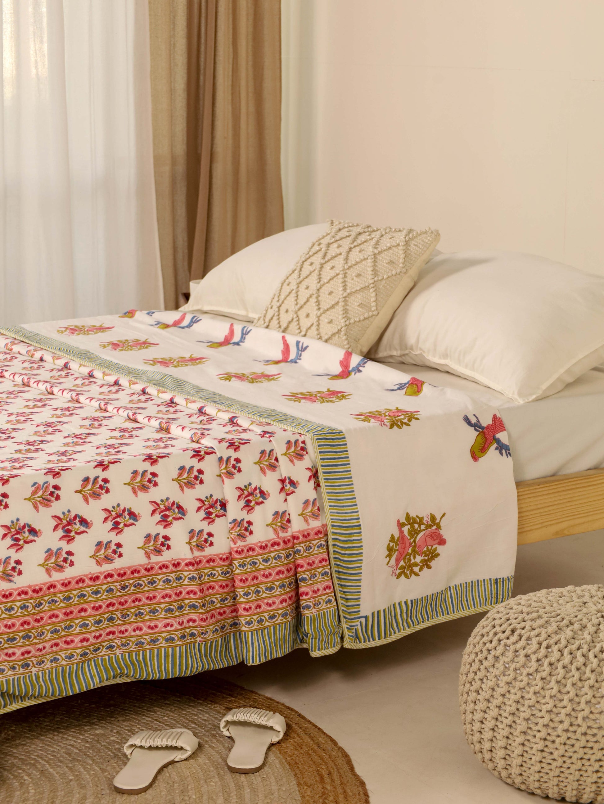 Shuddhi is introducing Dohar Reversible Bed Cover. Dohar Reversible Bed Cover that can be used on both sides, is a lightweight, three-layered blanket that typically consists of two outer layers of fabric stitched together with a layer of cotton filling in between them. Dohars are known for their comfort and breathability, making them suitable for various seasons. |