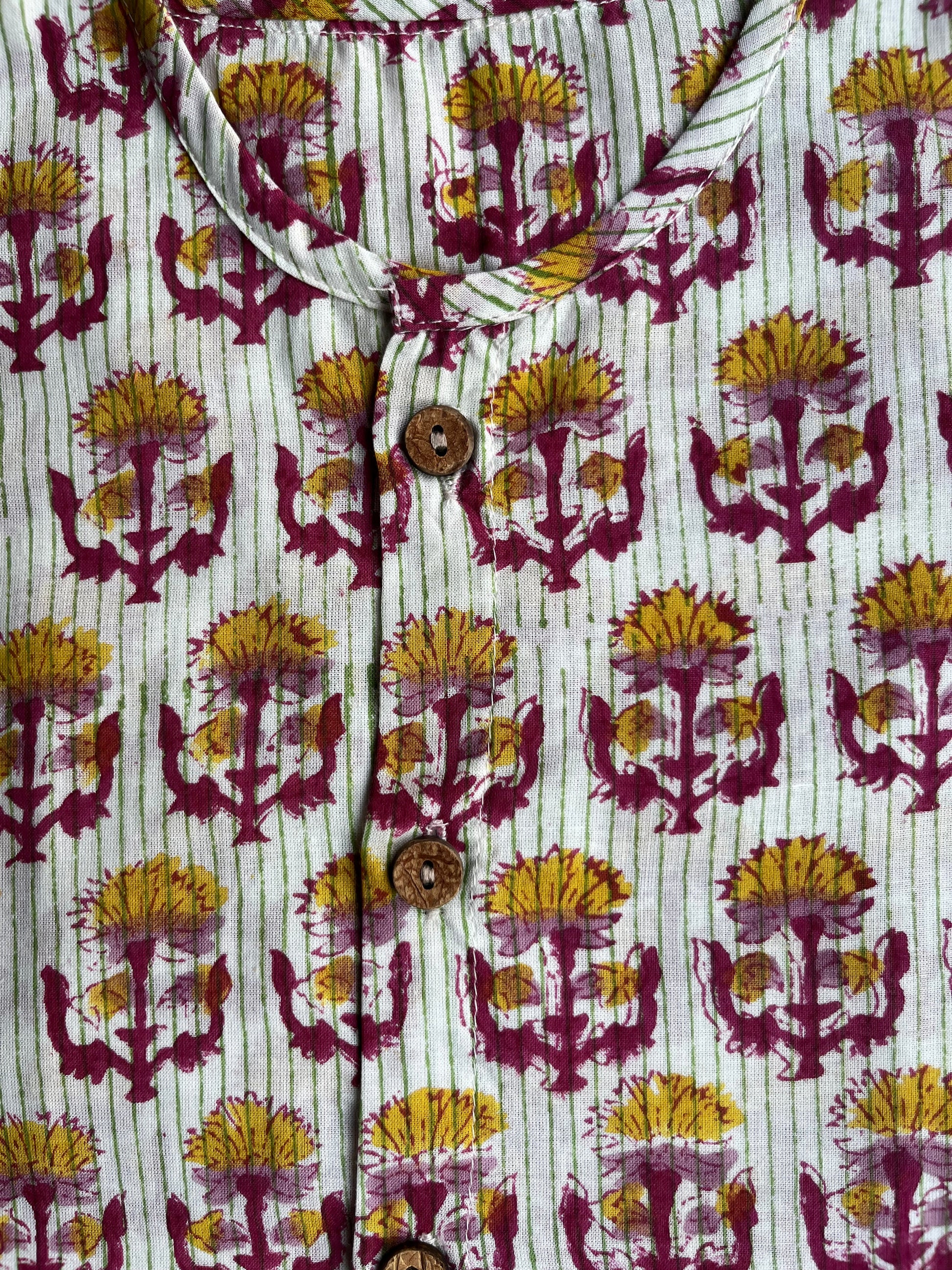 The Jhabla Cotton Set with Shorts is an excellent addition to any infant/child wardrobe. With its blend of comfort, practicality, and style, this set is perfect for both everyday wear and special occasions. Made from high-quality cotton and handblock printed designed with care, it provides a perfect balance of traditional charm and modern convenience. Choose this set for a stylish, comfortable, and versatile outfit that your child will love.
