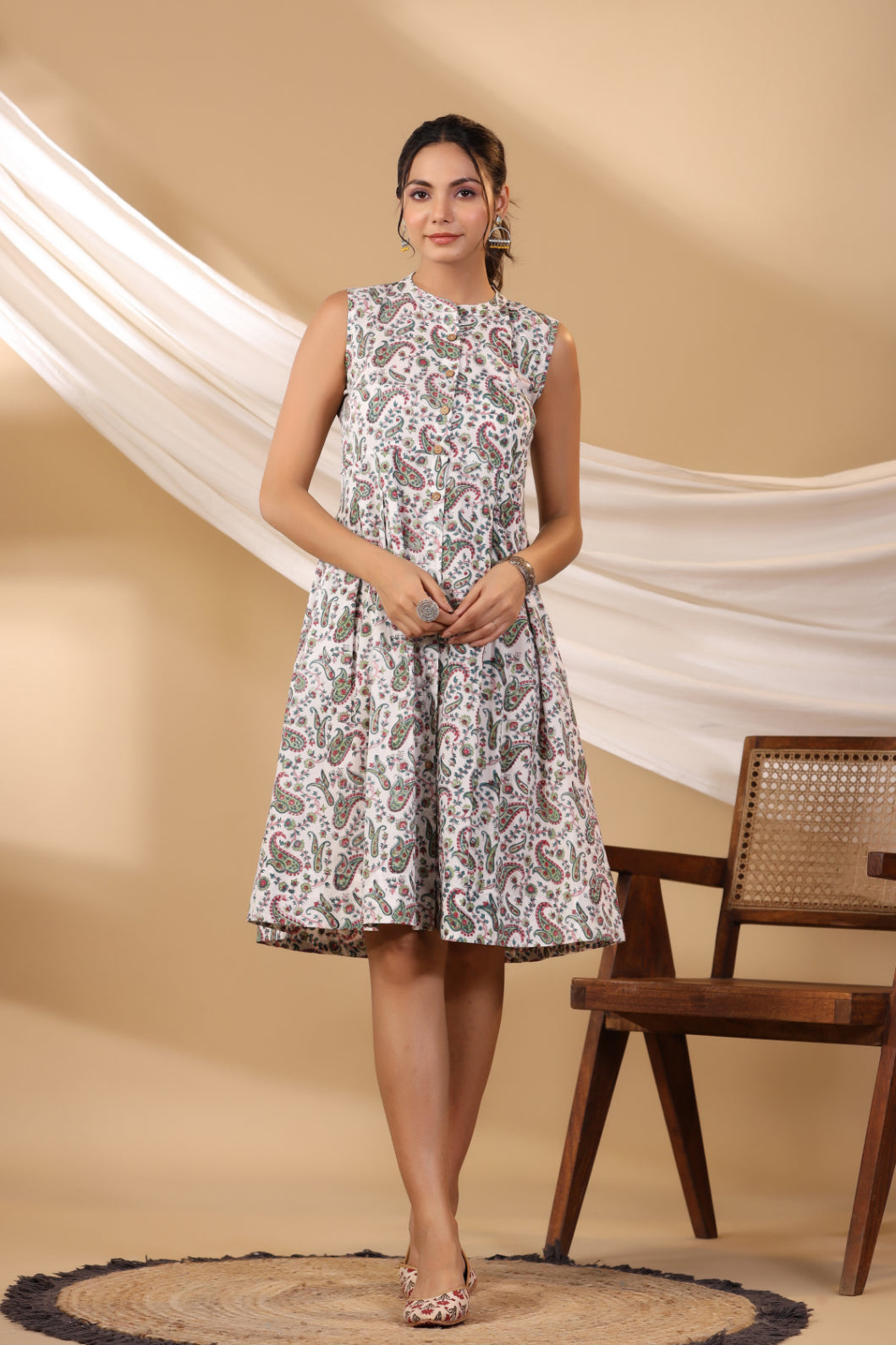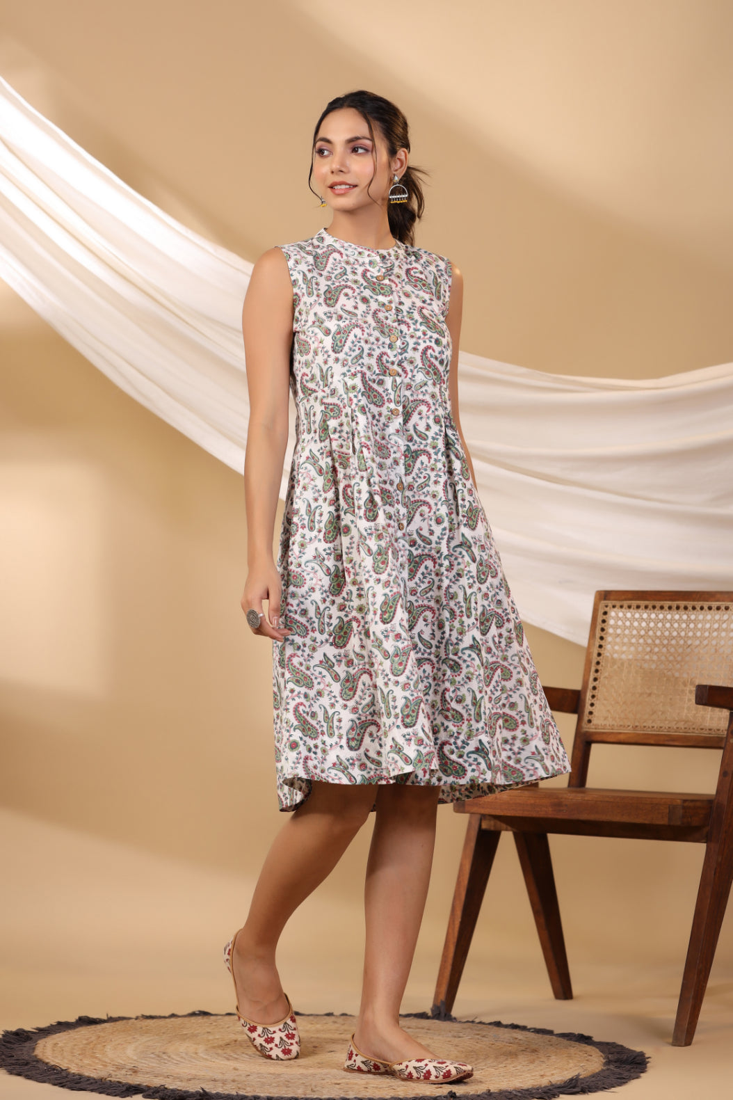 Our Timeless FLORAL BUTTON DOWN DRESS Comes with a combination of Green with White made with Soft Cotton Fabric for Chic Look.